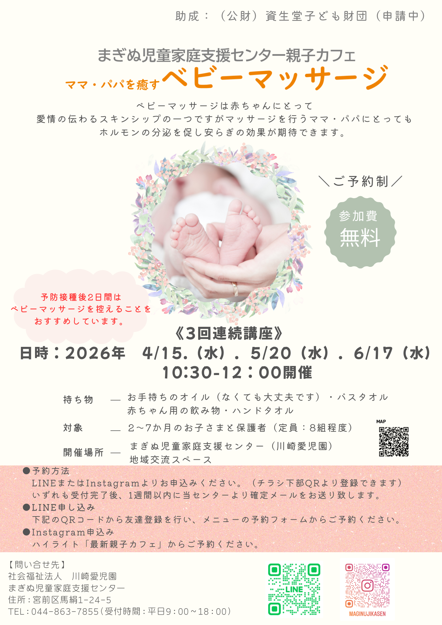 ・4月15日・5月20日・6月17日「ベビーマッサージ(3回連続講座)」
